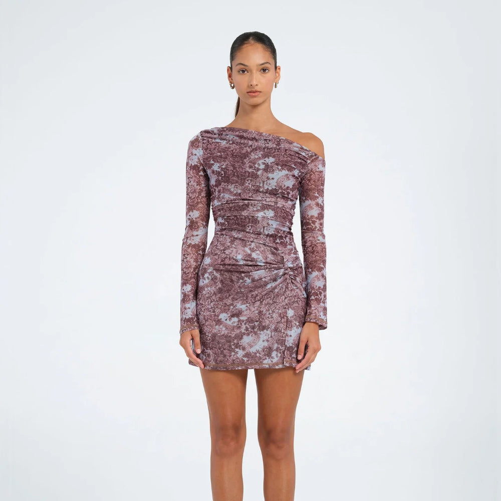 The Elijah Dress is a Mini Dress featuring an asymmetric neckline and elongated sleeves. The design is finished with gathers on hip and and a small slit opening on the leg. The design is finished with a subtle slit at the leg, making this dress perfect for both evening events and special occasions. Pair it with heels and minimal accessories for a timeless, refined look.